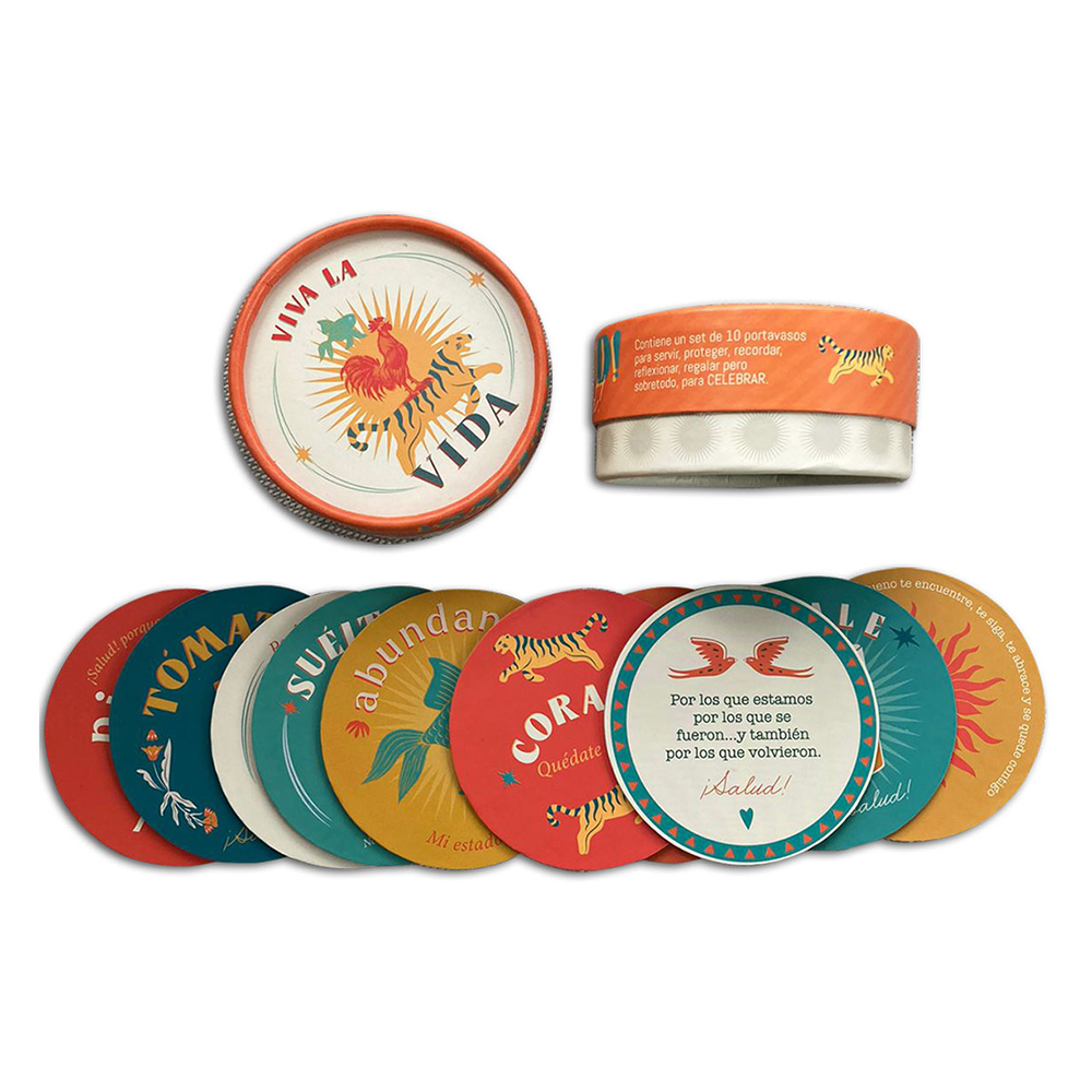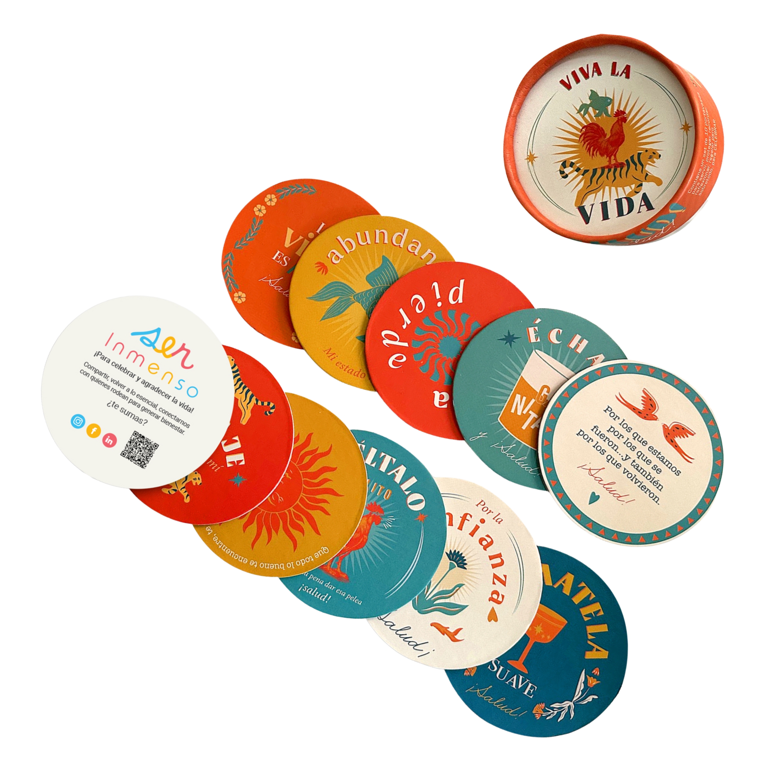 “Viva la Vida” es un juego de 10 portavasos con un mensaje que transforma la mesa en un espacio de celebración y presencia.